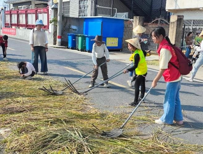 活动过程中,志愿者协助活动指导老师开展相应工作,主要包括陪伴帮助参与收割体验的小朋友们收割、搬运水稻,在活动中提醒小朋友及其家长注意安全,拍摄活动照片等。在志愿者的努力帮助下,小朋友及家长准确领会指导老师的要求,活动有序开展。