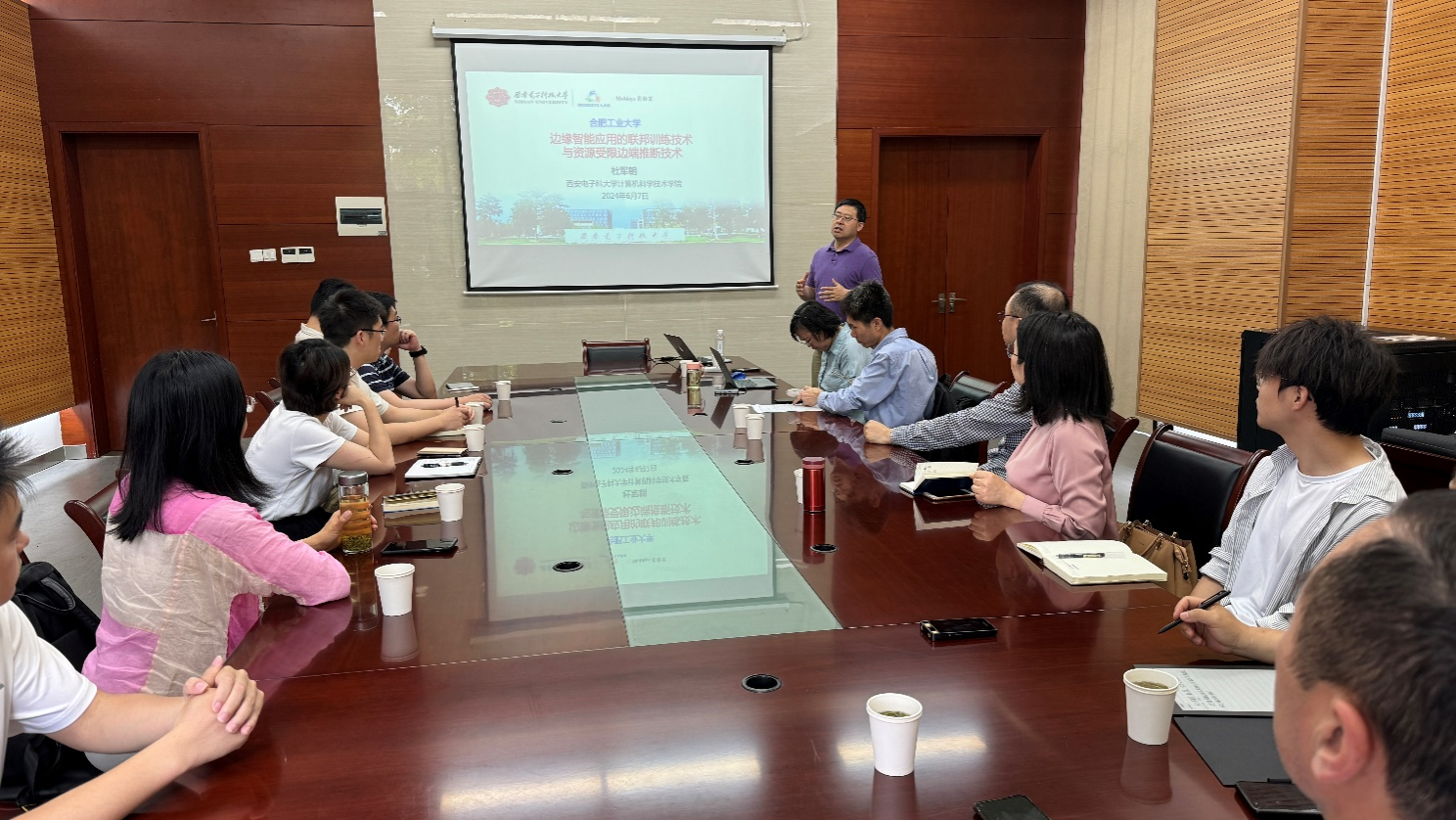 应公司魏振春副教授的邀请,2024年6月7日上午,西安电子科技大学杜军朝教授在翡翠科教楼第三会议室为公司师生做了题为“边缘智能应用的联邦训练技术与资源受限边端推断技术”的精彩学术报告。魏振春副教授主持了本次报告会,安徽师范大学、公司数学公司以及公司相关研究方向的教师和研究生参加了报告会。