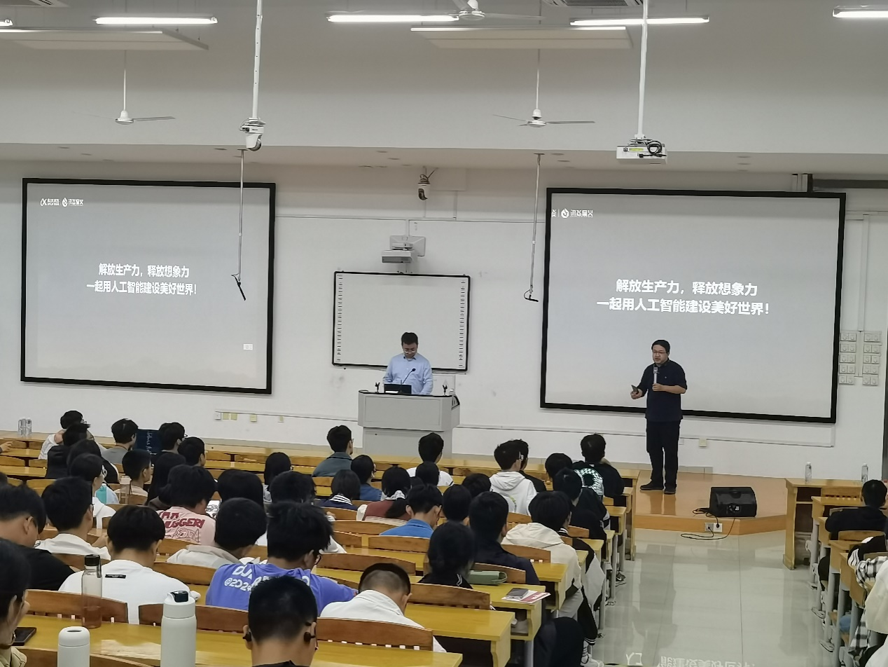 为深入推进产教融合工作,促进智能科学与技术专业本科生尤其是大一新生更好的了解人工智能前沿发展,2024 年 10 月 11 日,智能科学与技术系邀请了科大讯飞研究院执行经理、认知智能全国重点实验室副主任王士进在宣城校区新安341 教室做学术前沿报告,宣城校区计算机与信息系主任欧阳一鸣教授主持了此次报告会。约350多名本科生和多名教师参加了此次报告会,聆听了王士进经理的精彩报告。