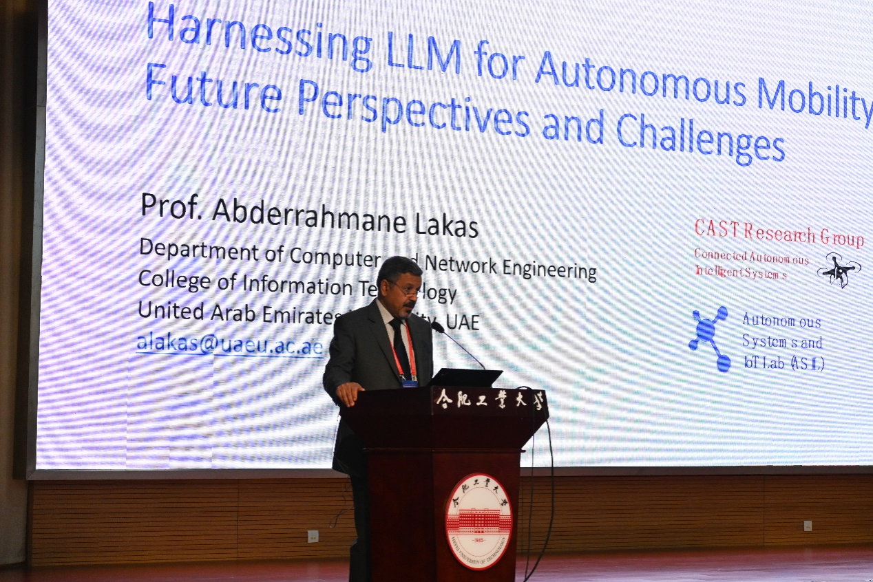 Abderrahmane Lakas教授的报告题目为“Harnessing LLMs for Autonomous Mobility: Opportunities and Challenges”,该报告为自动驾驶领域带来国际化的视野与前沿思考,从不同文化与学术背景下审视自动驾驶技术的发展机遇与挑战,进一步丰富论坛的学术内涵与多元性。