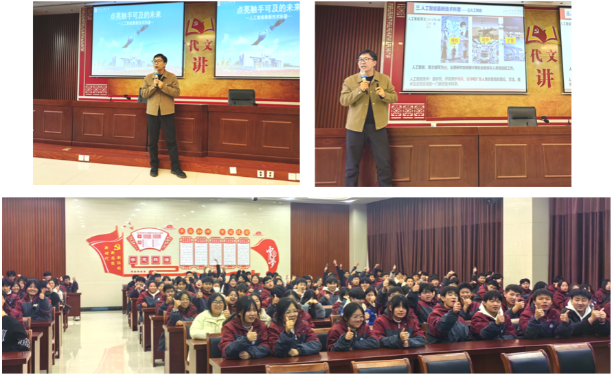 在利辛县新能源公司,刘建老师为200余名员工做了“点亮触手可及的未来”人工智能技术科普讲座,生动地介绍了人工智能技术在我国各行业的最新应用,同时把大家学过的函数、向量&矩阵、概率统计等知识结合AI方法,解决了现实生活中的问题。讲座不仅让广老员工全面认识了人工智能的基本原理和各种应用,开阔了眼界,而且激发了学习新技术的浓厚兴趣。