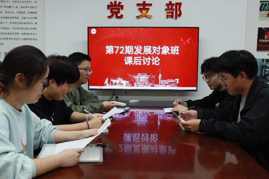 11月14日公司72期发展对象班研究生学员在翡翠湖校区科教楼A座5楼大厅会议室举行了围绕“结合研究生学习生活谈一谈如何在树立良好校风学风方面做表率”的主题讨论。