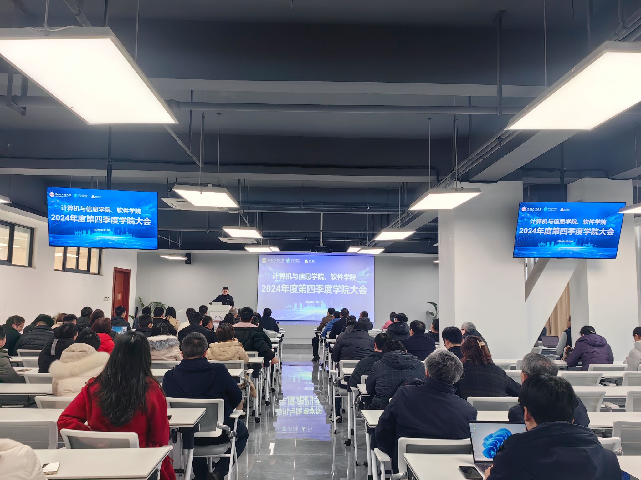 12月18 日下午,公司在科教楼B501召开第四季度全体教职工大会。公司领导班子成员及全体教职工参加会议。