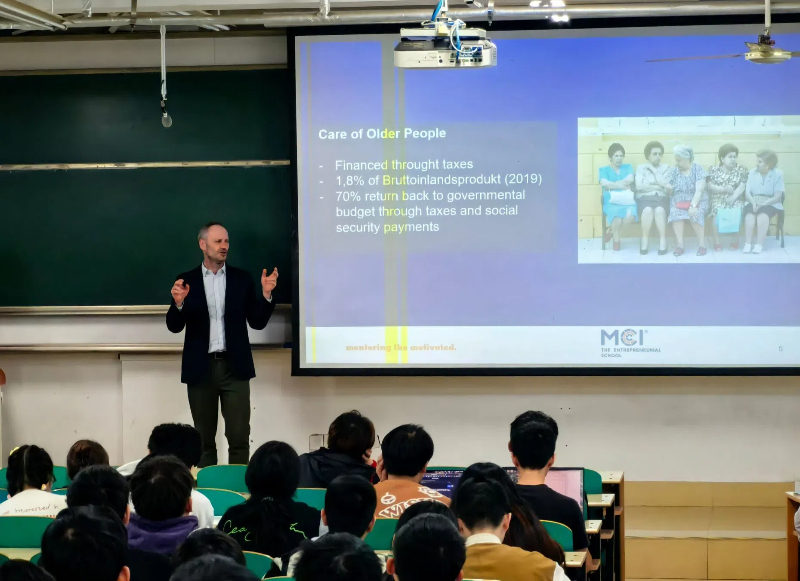 奥地利因斯布鲁克管理中心(MCI)在欧洲高等教育体系中具有重要地位。此次教学活动是公司积极探索“办学国际化”的一次重要尝试,为深化中奥高校合作、推动智慧养老领域的教育与技术交流迈出了坚实的一步。
