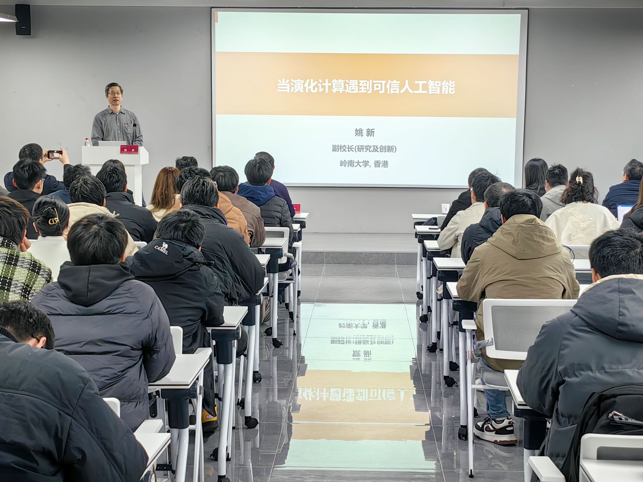 2月20日上午,国际演化计算领域著名专家香港岭南大学副董事长姚新教授应邀为公司师生带来“当演化计算遇见可信人工智能”专题讲座。此次讲座吸引了来自TapTap点点、软件公司、经济公司、建筑与艺术公司以及数学公司近200名师生参与,现场气氛热烈,学术氛围浓厚。