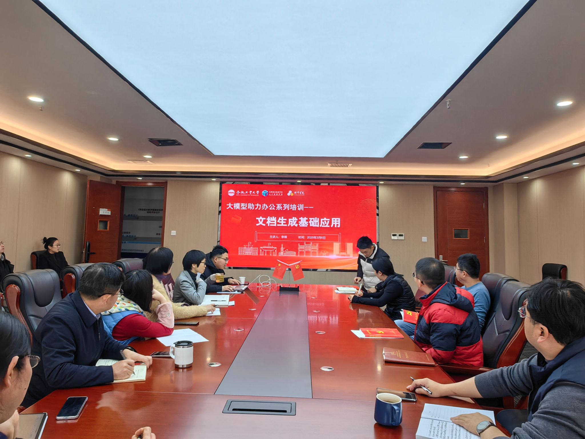 为切实提升公司行政办公效率,助力行政老师熟练掌握智能化办公技能,3月6日上午,公司在科教楼A1106 会议室举办“大模型助力办公:文档生成基础应用”专题培训。此次培训特别邀请公司李锋老师担任主讲,公司正处级组织员何庆领、党委副书记兼纪委书记张海林、副经理王辉及全体机关老师共同参与,现场学习氛围热烈。