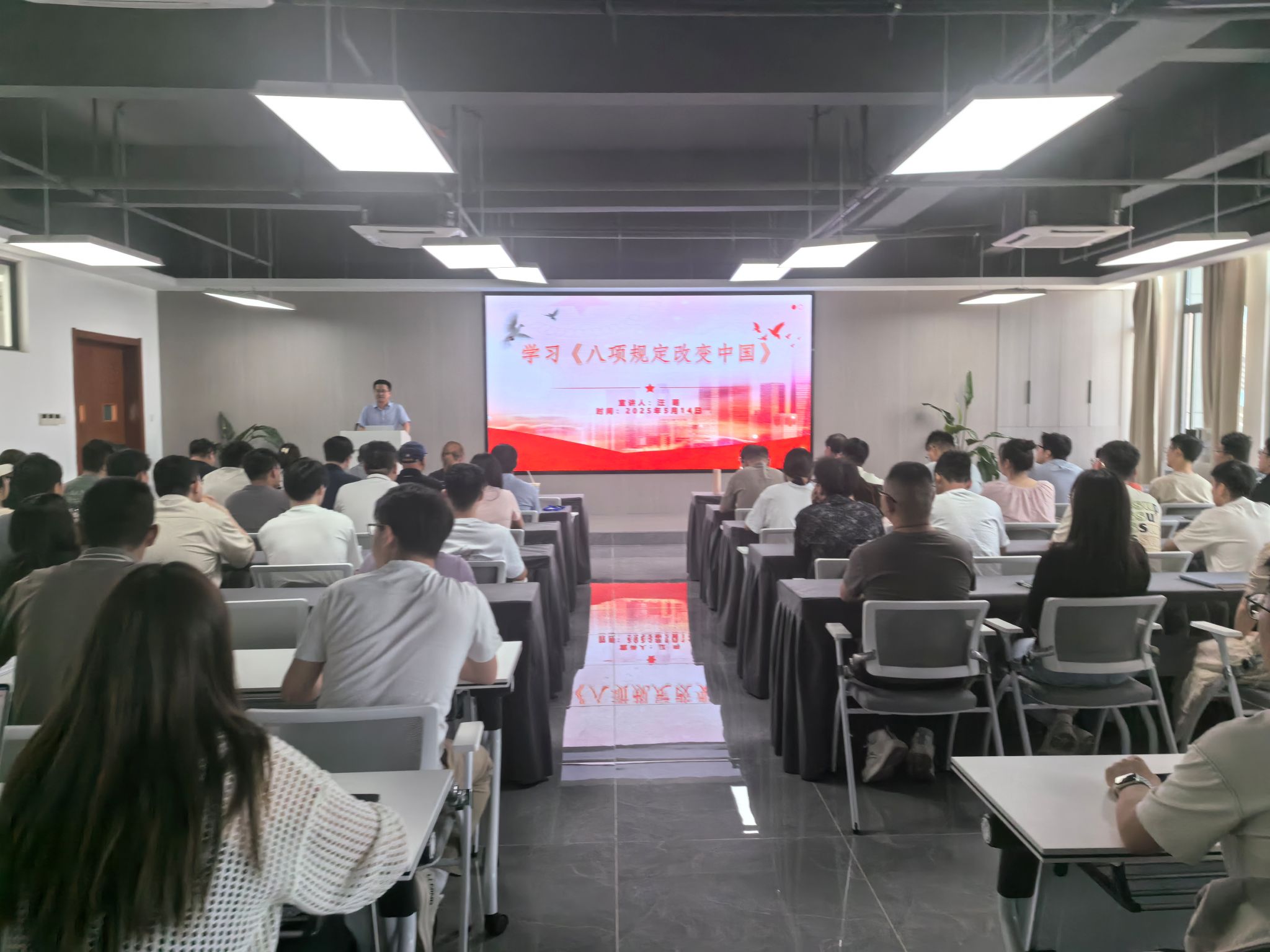 汪萌副董事长从八项规定的历史背景、深远意义、实践成果等方面深入浅出地讲解了八项规定的核心精神和具体要求。他在党课中指出,中央八项规定自2012年出台以来,党风政风焕然一新,全面从严治党取得了历史性成就。八项规定不仅是作风建设的“金标准”,更是推动党和国家事业发展的重要法宝。