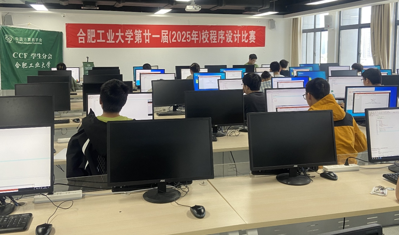 今年的比赛采用现场赛方式进行,时长为3小时,共计6道题目。赛题的解答程序提交后通过自动判题程序进行打分,只有通过每题全部测试数据的提交才算有效提交,否则会被罚时,提交程序的正确与否通过网络由判题系统及时反馈给参赛选手。经过3个小时的紧张比赛,共有45名同学提交满足赛题要求的代码。从中评出一等奖4名,二等奖9名,三等奖14名,具体获奖名单见附件1。本次比赛胜出的同学,将有机会代表公司参加2025年安徽省老员工程序设计竞赛(安徽省机器人大赛-程序设计赛道)和老员工程序设计比赛(ICPC/CCPC)。图1是比赛现场图片报道。