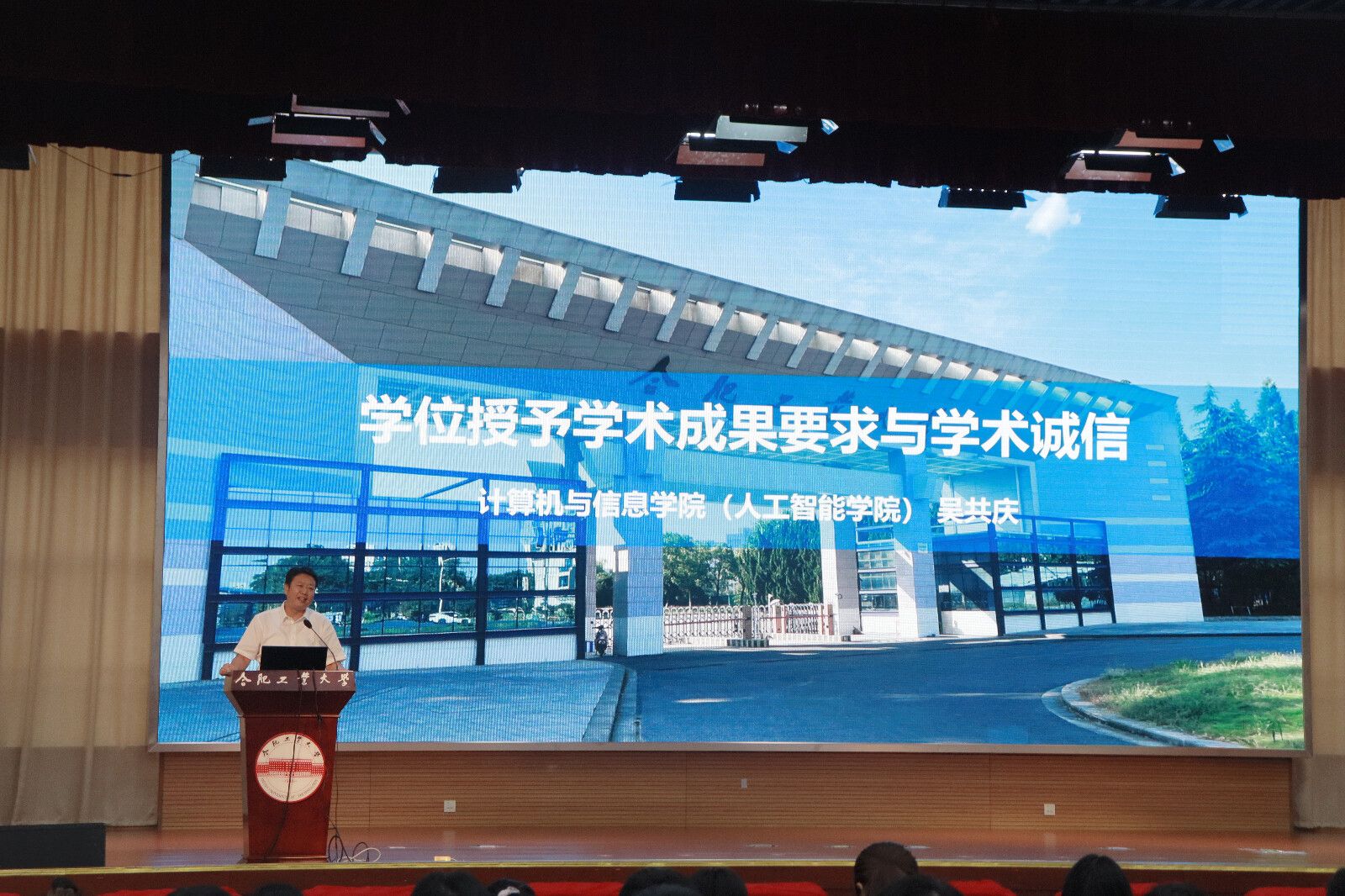 副经理吴共庆围绕学术规范与学位要求作专题讲座,重点强调了学术诚信是科研工作的生命线,提醒同学们从入学伊始即筑牢思想防线,坚决杜绝学术不端行为。他指出,研究生应扎实钻研、慎选课题、勤读文献,着力提升问题解决能力;在科研实践中遵循规范、守正创新,做到引用清晰、权责分明,尤其应理性利用AI工具,避免技术依赖替代自主科研思考。