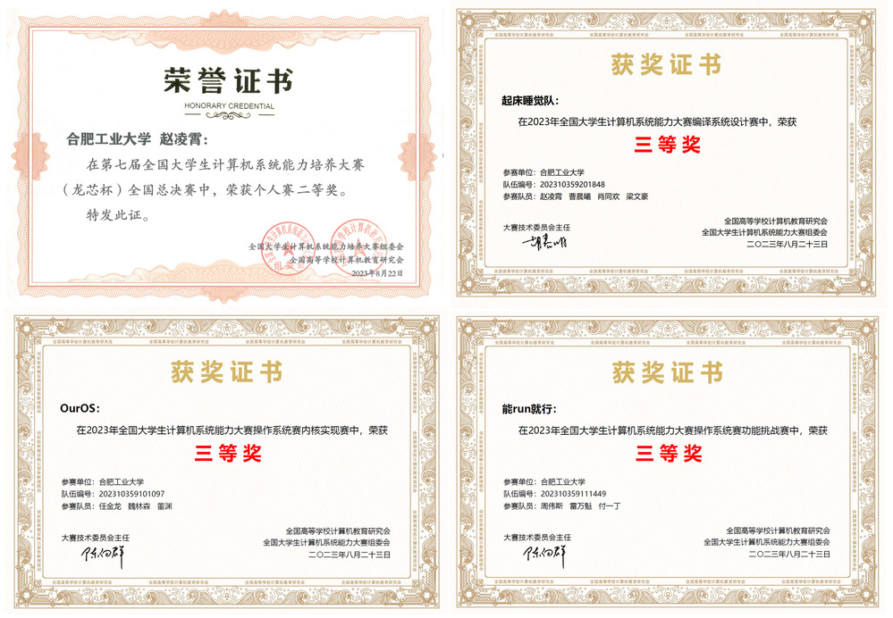 Students in Our School Won Multiple Awards at the 2023 National University Student Computer System Capability Competition